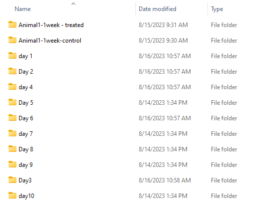 Top Level Folder \ Animal1 \ day 1 \ export data.xlsx