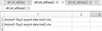 {'File', 'export data-trial1.xlsx'}; {'File', 'export data-trial2.xlsx'};