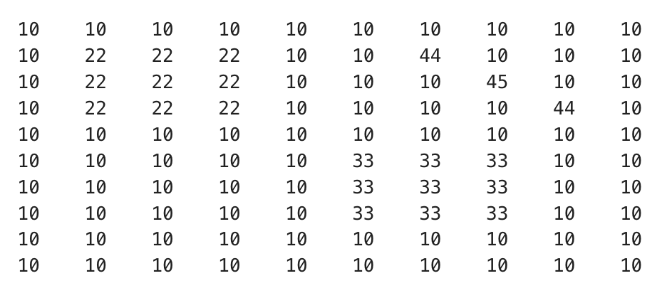 예를들어 픽셀값의 분포가 아래와(출처 3) 같고 배경의 픽셀값은 10, 배경사이에 높은값 22, 33,