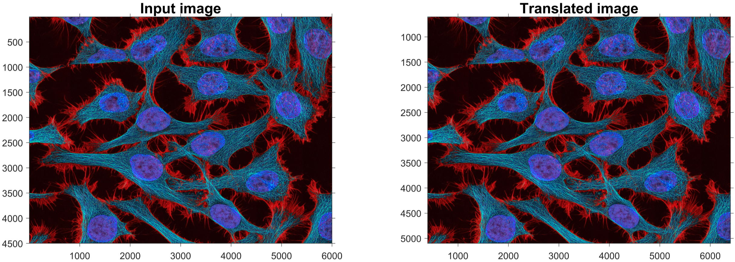 ax = gca; ax.FontSize=13; title('\fontsize{20}Translated image');