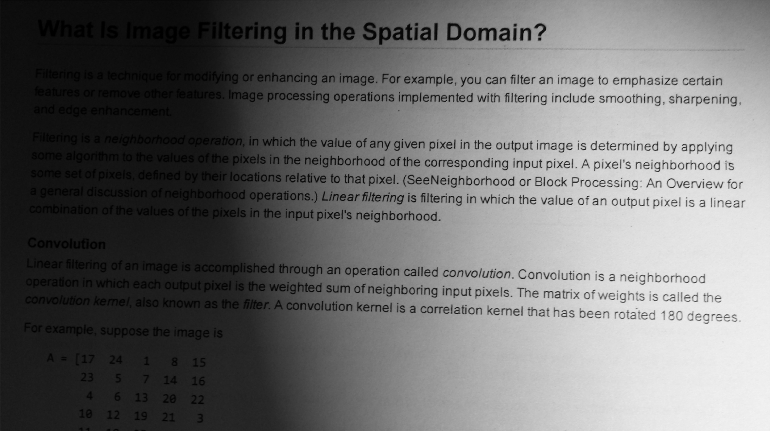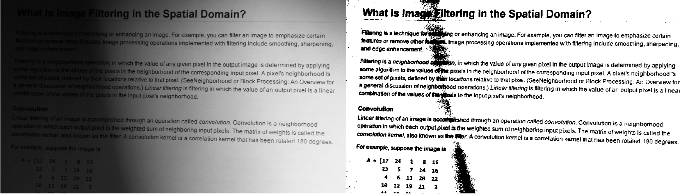 이처럼 균일하지 않은 조명을 갖거나 구역마다 contrast가 변동하는 이미지의 binarization 변환은