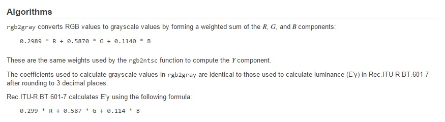 한 발 더 나아가, grayscale 이미지 변환의 알고리즘은 MATLAB의 help에 설명이 되어 있습니다.
