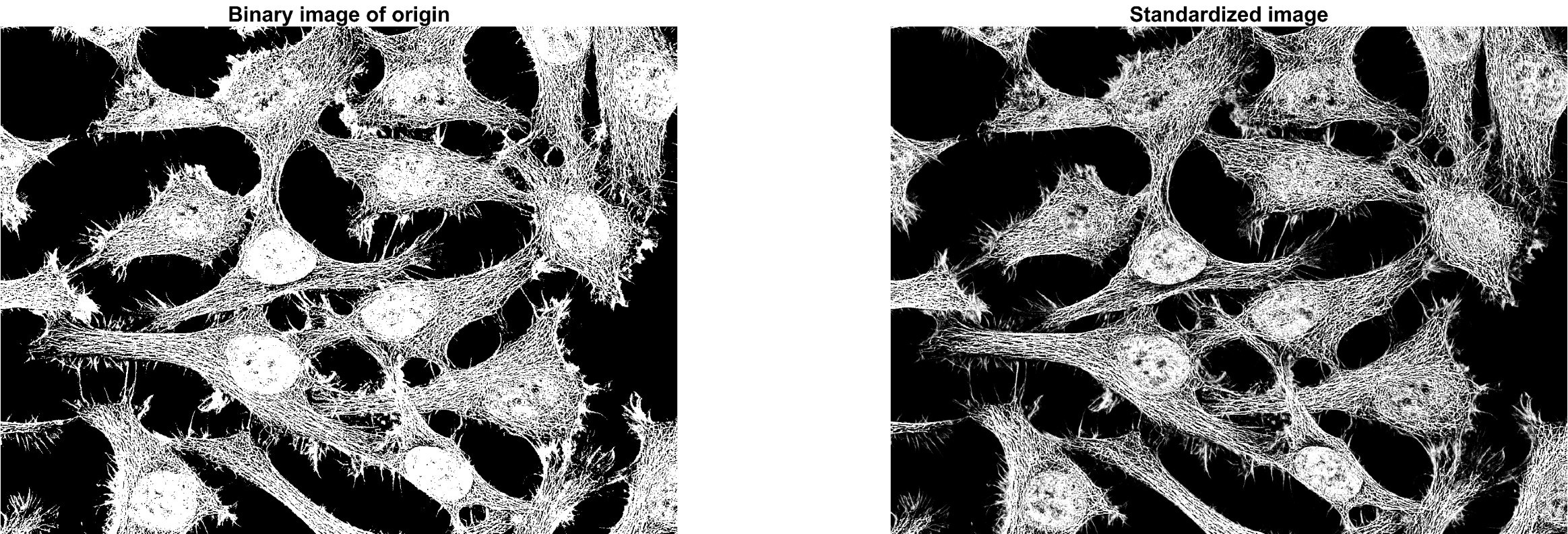 자세히 본다면 cell(세포) 내, 외부의 미세한 형태적 특징을 좌측의 binarization 결과 보다 조금