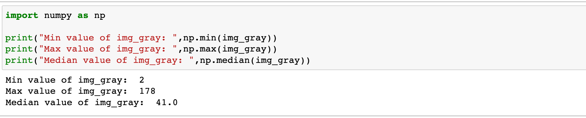 Gray scale 이미지의 픽셀값 중 최소(min), 최대(max), 중간값(median) 은